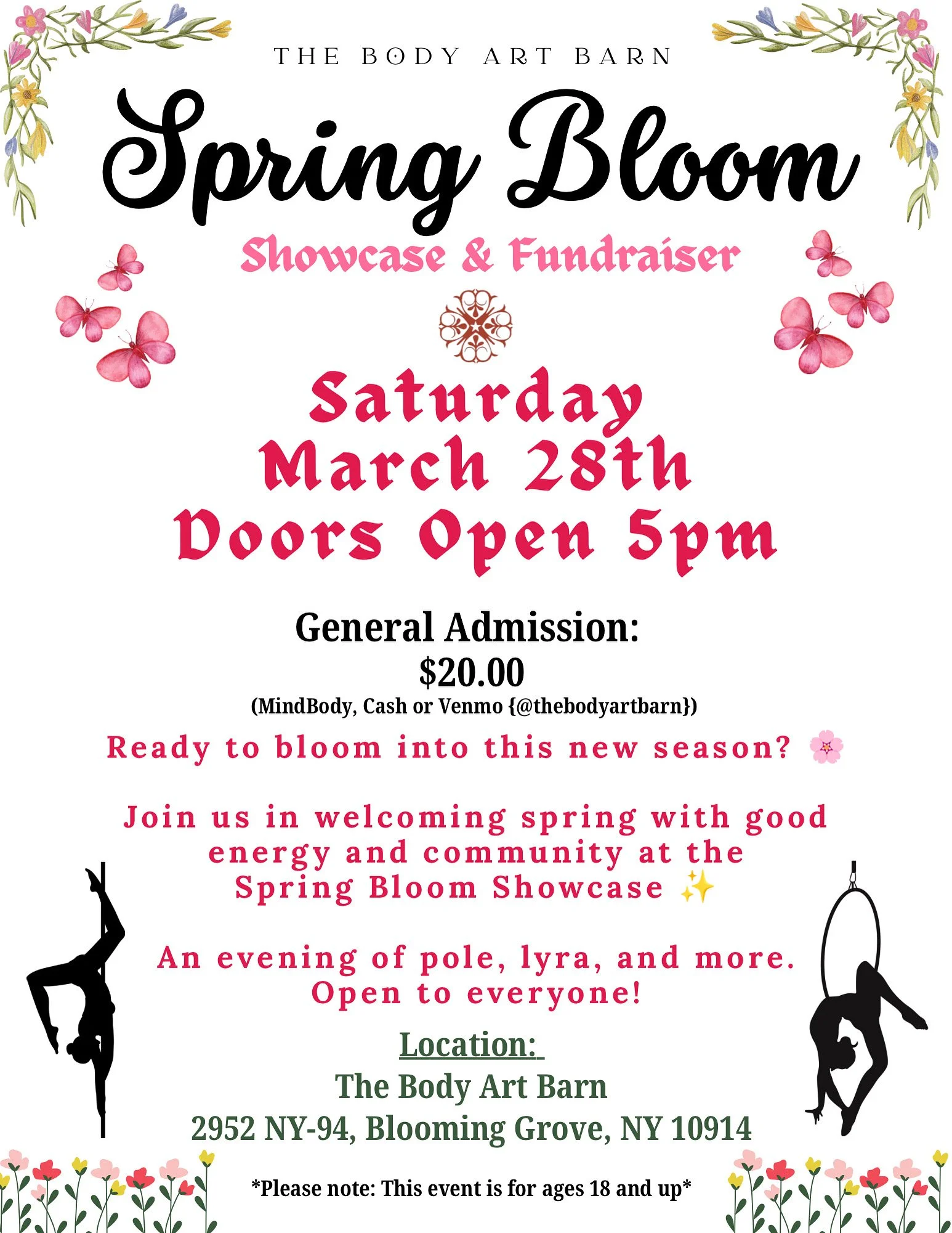 Join us for a night of stunning performances at The Body Art Barn’s Spring Bloom Showcase & Fundraiser 💐
