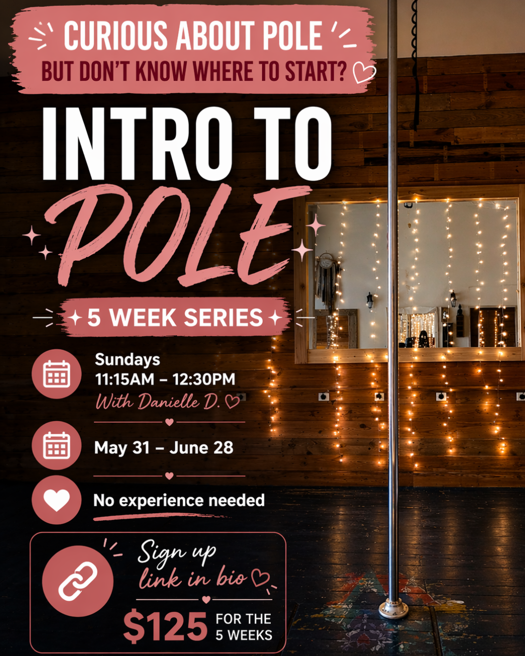 Curious about Pole Dancing but don’t know where to start? Sign up for this 5 Week Series that will deliver all of the practice, insight, and confidence you need to continue to the next levels.